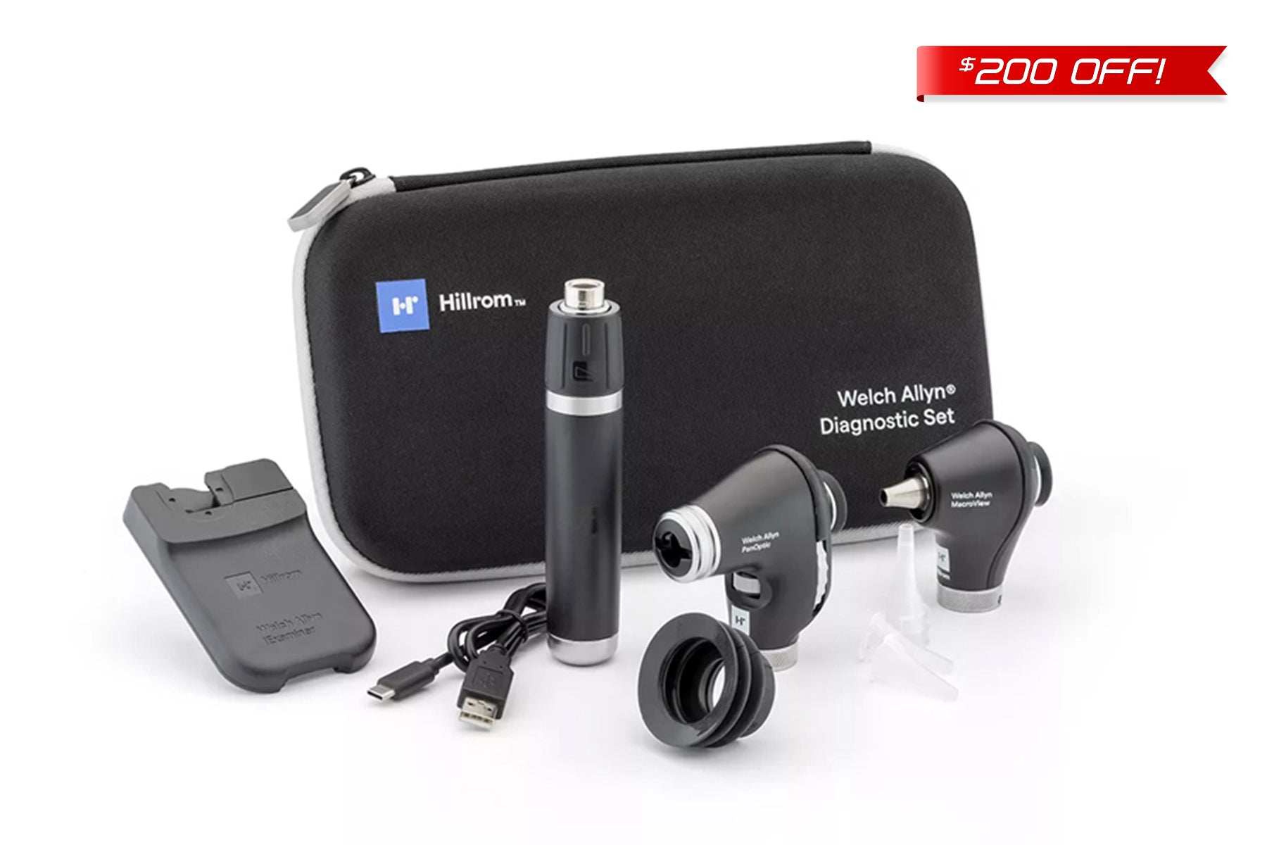 GPRA Hillrom - Welch Allyn Portable Diagnostic Set with PanOptic Plus, MacroView Plus, Li-Ion Plus USB-C Handle, iExaminer Adaptor - Hard Case