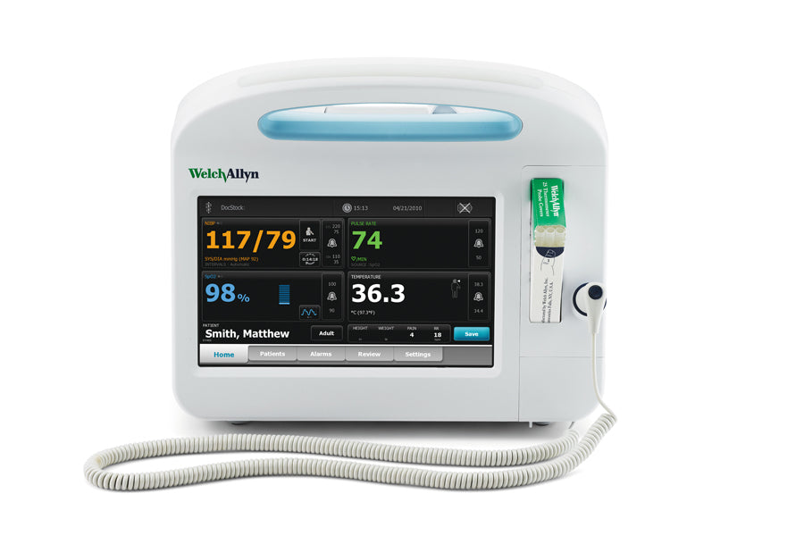 The Welch Allyn® Connex® Vital Signs Monitor. It's intuitive, touchscreen monitor features bright, vivid colours to improve workflows and training. Adaptable for most low-acuity healthcare environments and clinical workflows, it can measure pulse oximetry, non-invasive blood pressure (NIBP), and temperature. Since no two patients are alike, multiple profiles support continuous monitoring, interval monitoring, spot check vitals and averaging—so you can meet varying needs throughout your facility.