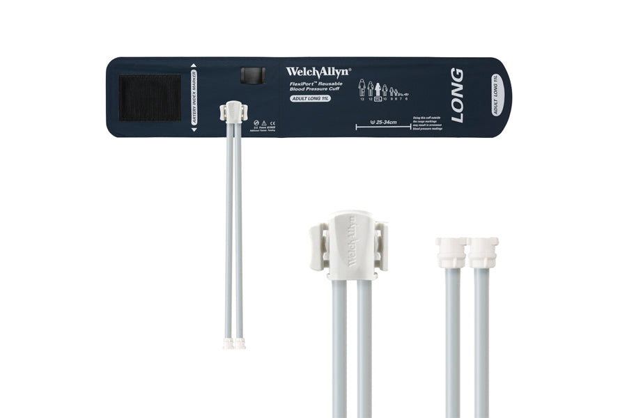 Hillrom - Welch Allyn Reusable FlexiPort Cuff - Two-Tube, Locking, Adult Long, Size 11L, 25-34 cm is either not in stock today and will be backordered, or may ship directly from the manufacturer. Depending on the product, this may take a few days to a few weeks but we will provide an ETA with your order confirmation or you can contact us for more details.