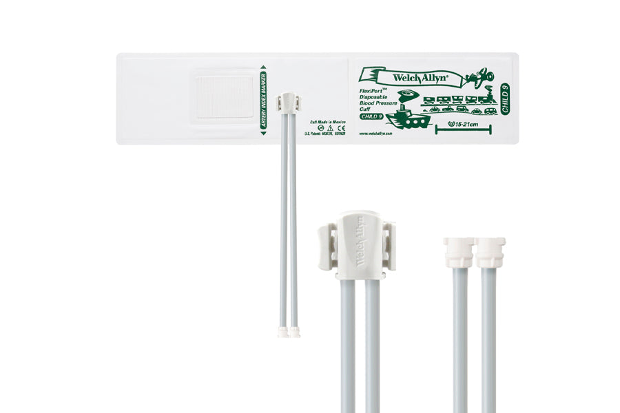 Hillrom - Welch Allyn Soft Disposable FlexiPort Cuff - Two-Tube, Locking (Box of 20), Child, Size 9, 15-21 cm