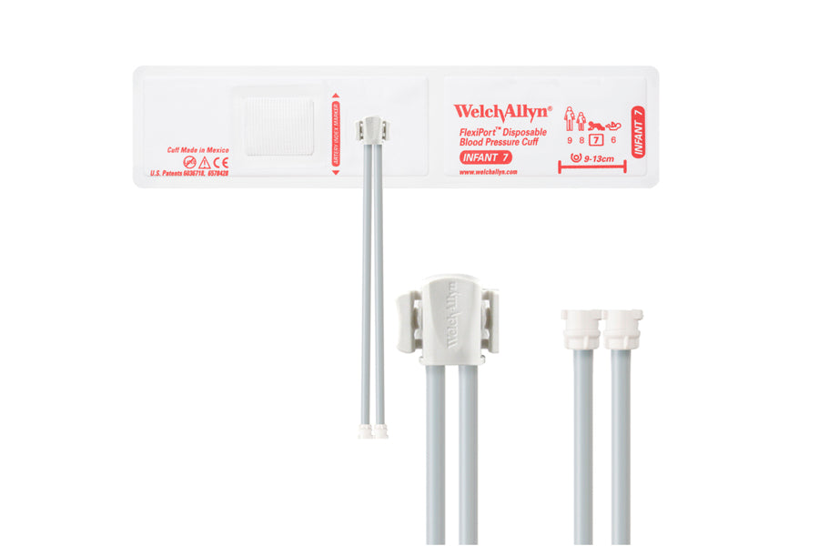 Hillrom - Welch Allyn Soft Disposable FlexiPort Cuff - Two-Tube, Locking (Box of 20), Infant, Size 7, 9-13 cm