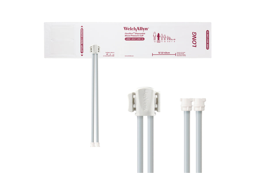 Hillrom - Welch Allyn Soft Disposable FlexiPort Cuff - Two-Tube, Locking (Box of 20), Large Adult Long, Size 12L, 32-43 cm