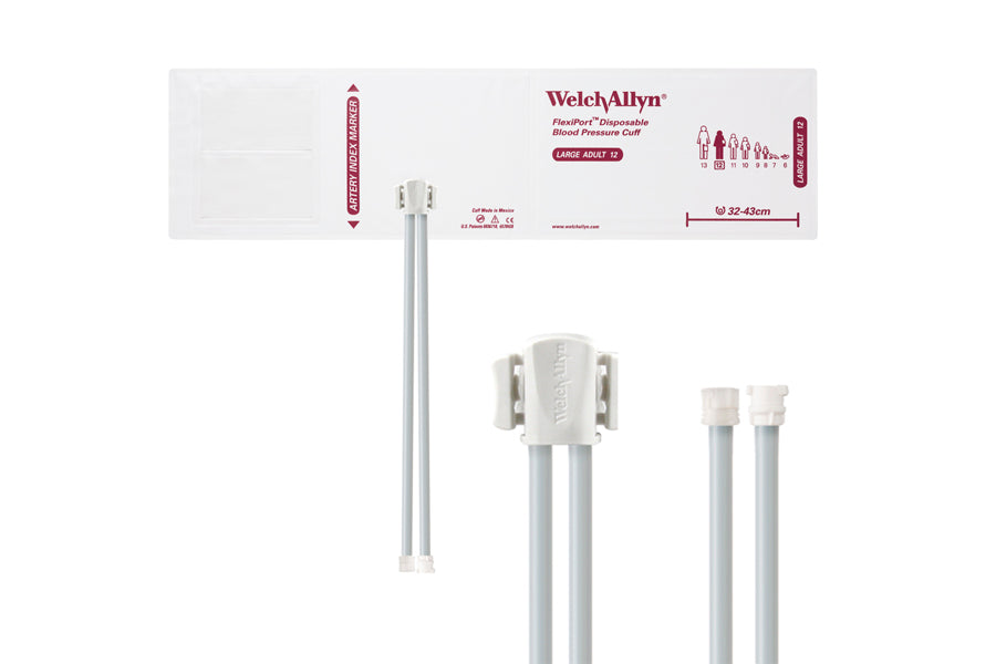 Hillrom - Welch Allyn Soft Disposable FlexiPort Cuff - Two-Tube Male Female Locking Connector (Box 20), Large Adult, Size 12, 32-43 cm