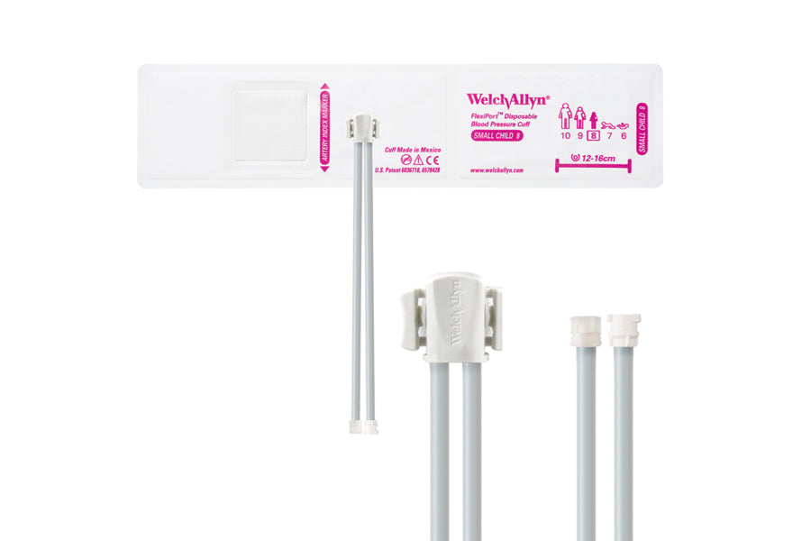 Hillrom - Welch Allyn Soft Disposable FlexiPort Cuff - Two-Tube Male Female Locking Connector (Box 20), Small Child, Size 8, 12-16 cm