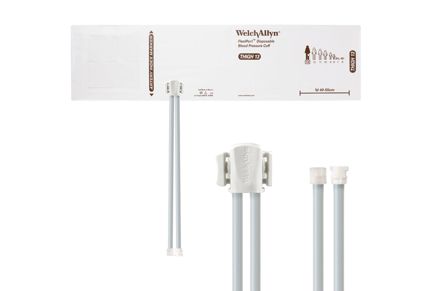 Hillrom - Welch Allyn Soft Disposable FlexiPort Cuff - Two-Tube Male Female Locking Connector (Box 20), Thigh, Size 13, 40-55 cm is either not in stock today and will be backordered, or may ship directly from the manufacturer. Depending on the product, this may take a few days to a few weeks but we will provide an ETA with your order confirmation or you can contact us for more details.