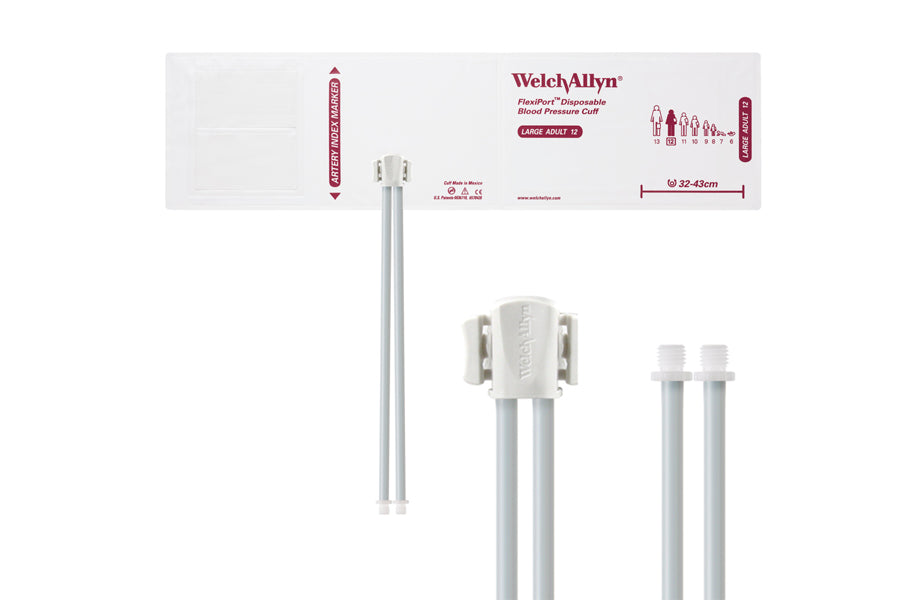 Hillrom - Welch Allyn Soft Disposable FlexiPort Cuff - Two-Tube, Screw (Box of 20), Large Adult, Size 12, 32-43 cm
