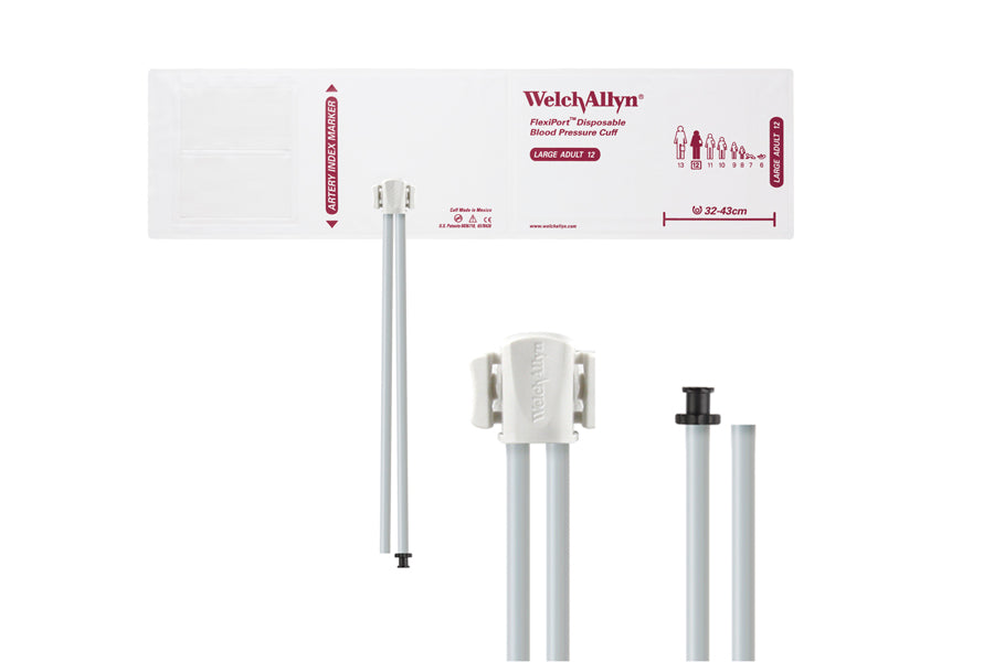 Hillrom - Welch Allyn Soft Disposable FlexiPort Cuff - Two-Tube, Tri-Purpose and Empty Tube (Box of 20), Large Adult, Size 12, 32-43 cm