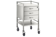 Stainless Steel Trolley with lock on top drawer - Single, 3 Drawer, 500 x 500 x 900mm