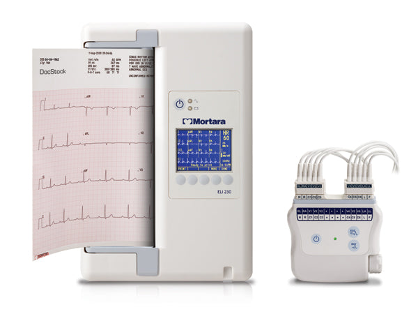 The Mortara ELI 230 Resting ECG system offers complete functionality in a compact, portable device. It is a cost-effective 12-lead ECG solution offering accurate and reliable adult/pediatric ECG interpretation and full-size printouts with the added convenience of wireless acquisition.