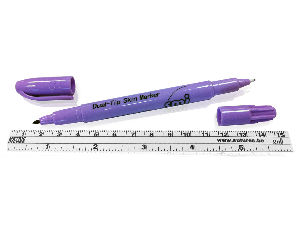 SMI Skin Markers with Dual-tip and Ruler - Sterile, Box of 36