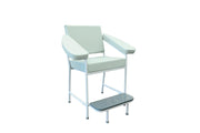 A comfortable pathology chair with soft, supportive high-density foam and stowable footrest.