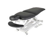 The contoured shape allows maximum accessibility to any part of the body during massage or body treatments while the adjustable face crest with incorporated armrest ensures client comfort while allowing the shoulders to be fully relaxed.