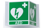 Angled wall sign designed to be displayed above your AED and viewable from an angle.