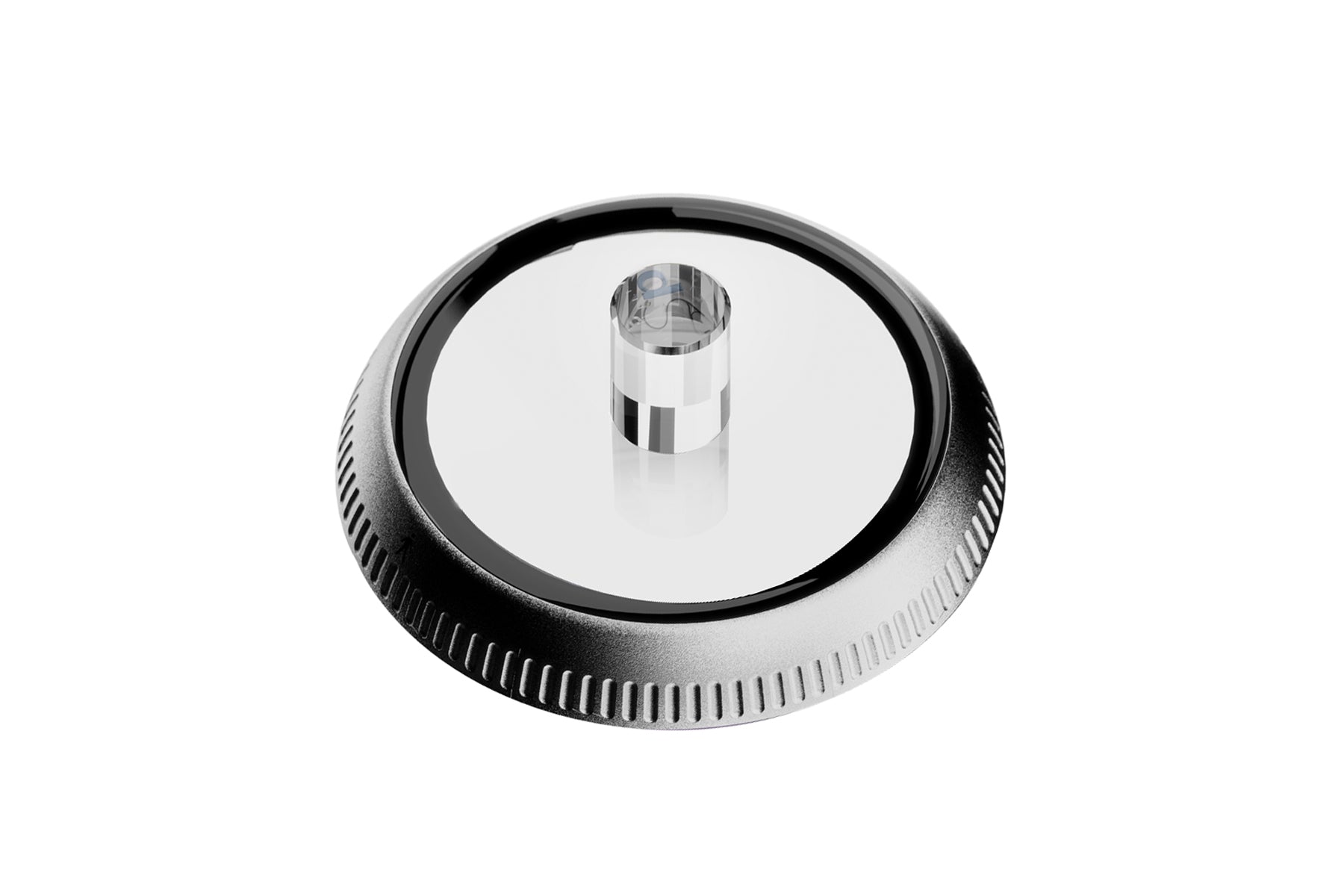 Contact plate with a small 10mm diameter extension for contact dermoscopy of concave body regions and crevices with immersion fluids