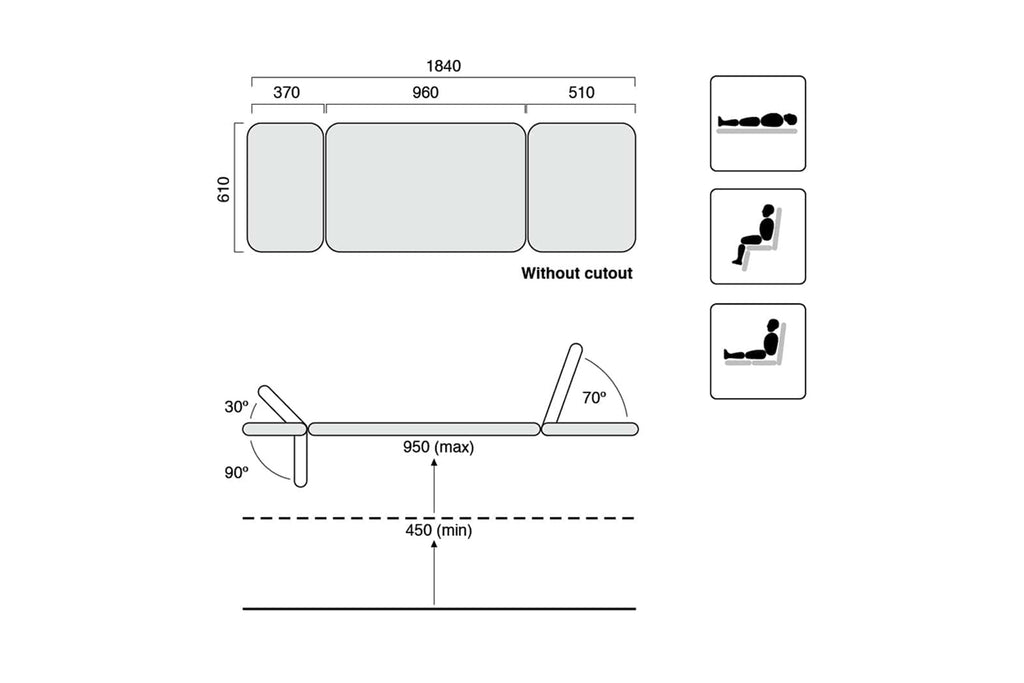 The small footprint and scissor lift design means it can be used in even the smallest of ultrasound rooms. The backrest can be manually adjusted from flat to +70º while the footrest can be manually adjusted from flat to +30º/-90º for perfect patient positioning.