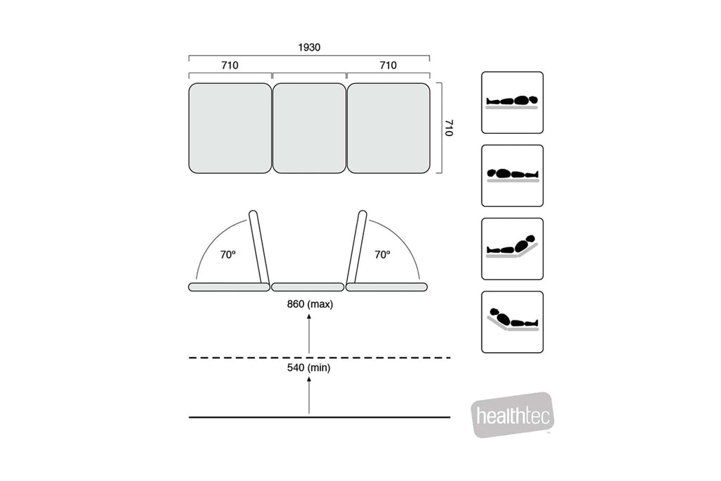 Healthtec SC GP Universal Examination Table (710 wide) - Three Section Electric Hi-Lo