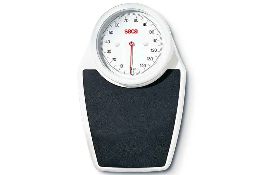 seca 762 Flat scale, mechanical, 150 kg black/white, 500g-division