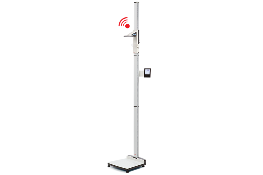 Determine weight and height – in just one step with this digital measuring station with wireless transmission option to PC.