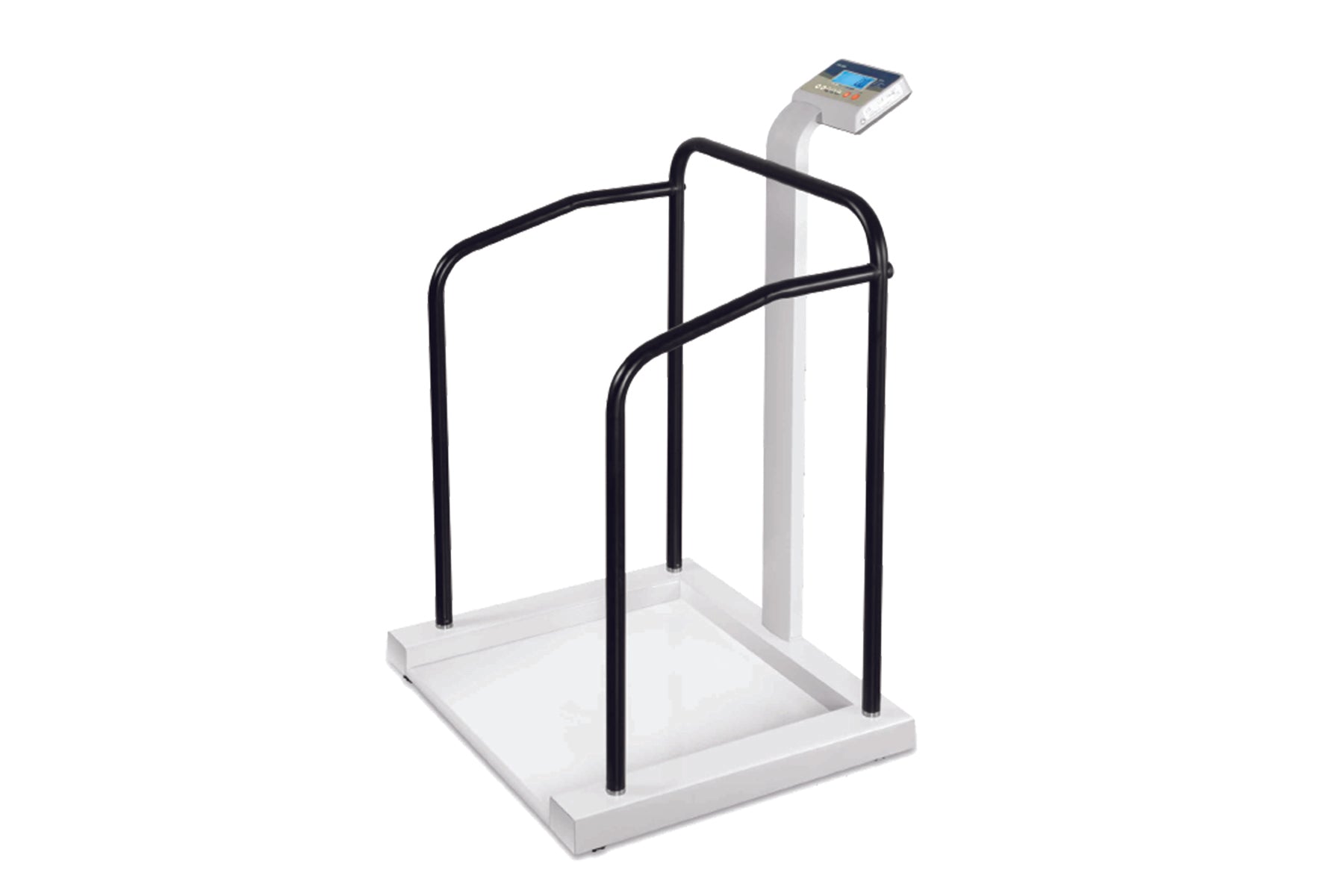 The AMH-400 bariatric scale is designed for the comfortable weighing of obese people, or people that may have balance issues. Its design includes a low-profile platform and a supportive handrail.