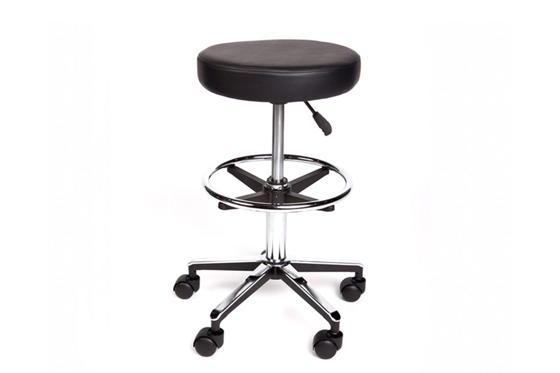 Premium Round Stool with foot ring and adjustable height, 49-61cm - Black